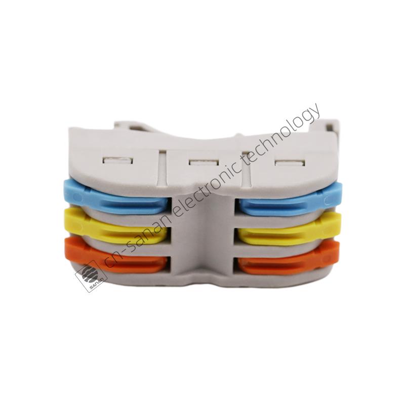 DIN ریل ٹرمینل کوئیک کنیکٹر آپ کی بجلی کی وائرنگ کی ضروریات کے لیے ایک قابل اعتماد اور موثر حل ہے۔ ون ان ون آؤٹ DIN ریل اسپرنگ لیور ٹرمینل بلاک الیکٹرک کیبل وائر کنیکٹر کے ساتھ، یہ لیور وائر کنیکٹر انسٹال کرنا آسان ہے اور غیر معمولی کارکردگی پیش کرتا ہے۔ سخت تار 0.08-4mm2 یا اس سے کم اور نرم تار 0.08-2.5mm2 یا اس سے کم کی وائرنگ رینج کے ساتھ، یہ ٹرمینل بلاک کنڈکٹر ایپلی کیشنز کی ایک وسیع رینج کو سنبھال سکتا ہے۔ اعلی معیار کے مواد سے بنایا گیا ہے، بشمول PA شعلہ ریٹارڈنٹ انجینئرنگ پلاسٹک اور کاپر کنڈکٹیو پٹی، DIN ریل ٹرمینل کوئیک کنیکٹر محفوظ کنکشن کو یقینی بناتا ہے جو بہترین برقی کارکردگی فراہم کرتے ہیں۔ یہ کمپیکٹ وائرنگ کنیکٹر پش ان ٹرمینل بلاک گھریلو آلات، لائٹنگ، مشینری اور دیگر تاروں میں استعمال کے لیے بہترین ہے۔